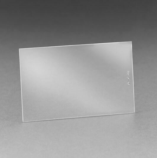 This safety plate is used on the electronic lens kit on the 3M Breathe Easy 17 Welding Headgear, 3M Headgear L-Series, and 3M Full Facepiece 7800S.