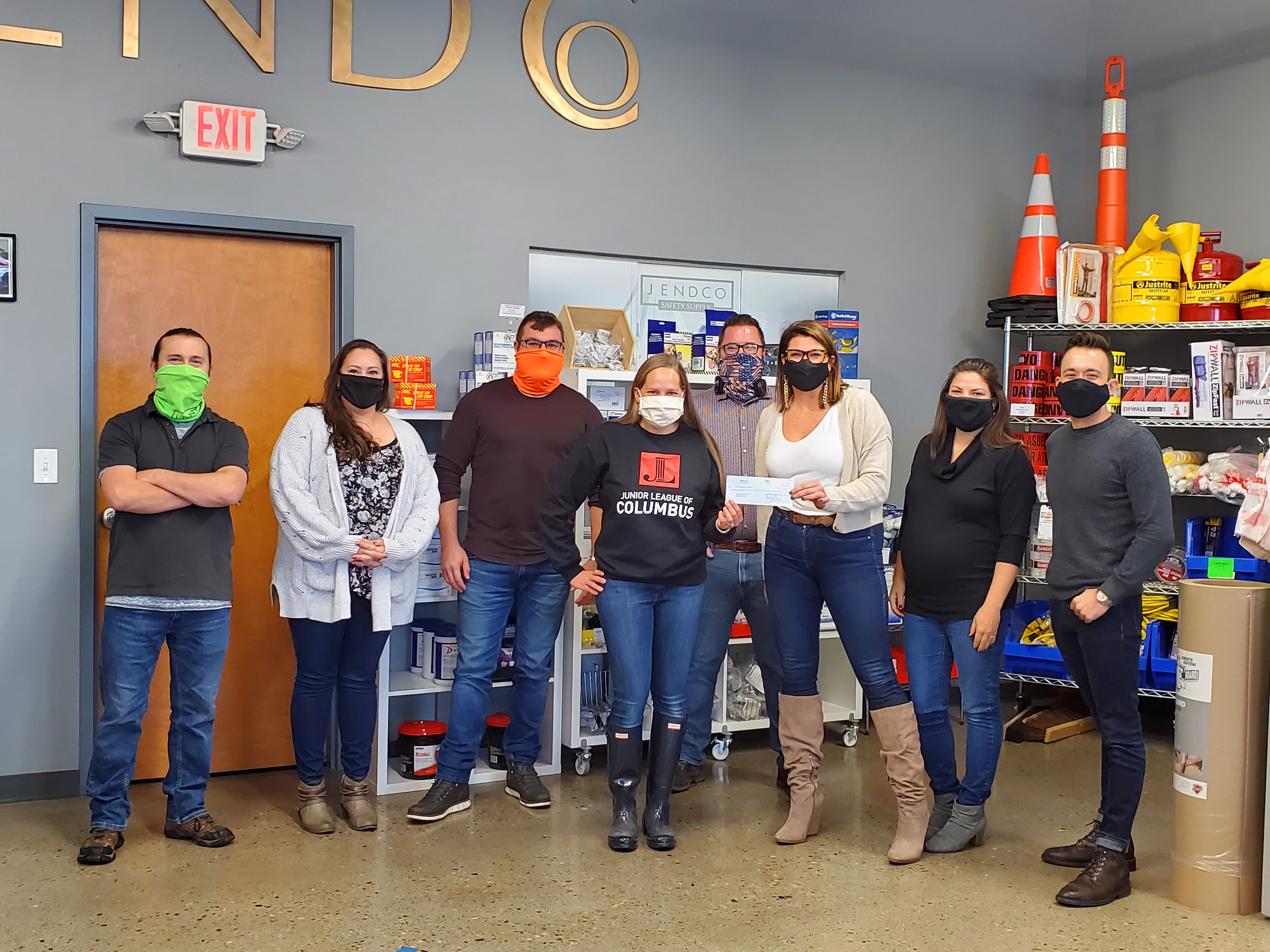 Today Jendco passed along the fruits of our September fundraising efforts to the Junior League of Columbus! 40 school supply-stuff backpacks will be provided to needy children in Columbus, Ohio. Well done team!